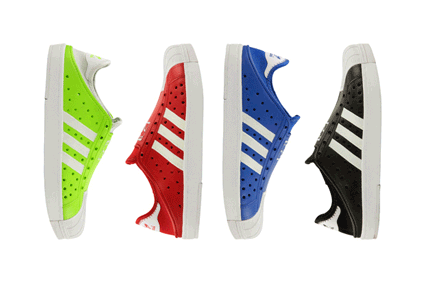 Donning a upper that gives nod to the technology and aesthetics of the likes of Crocs and Native Shoes, the BEACHSTAR features a perforated EVA upper that is rounded out by a neoprene constructed sock. The trademark shell toe resides along the front of the shoe while customary Three Stripes, a pure white outsole and tonal stitching finishes off the summer-ready pairs.