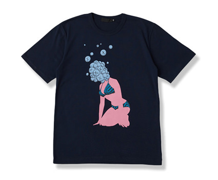 Kaws’ signature sketching masks a bikini-clad pink characterized women that serves as the screened graphic of the front of the tee. The signature OF ribbed collar and embroidered X on the sleeve finish off the tee that is offered in a range of color options – white, black, heather grey and navy blue.