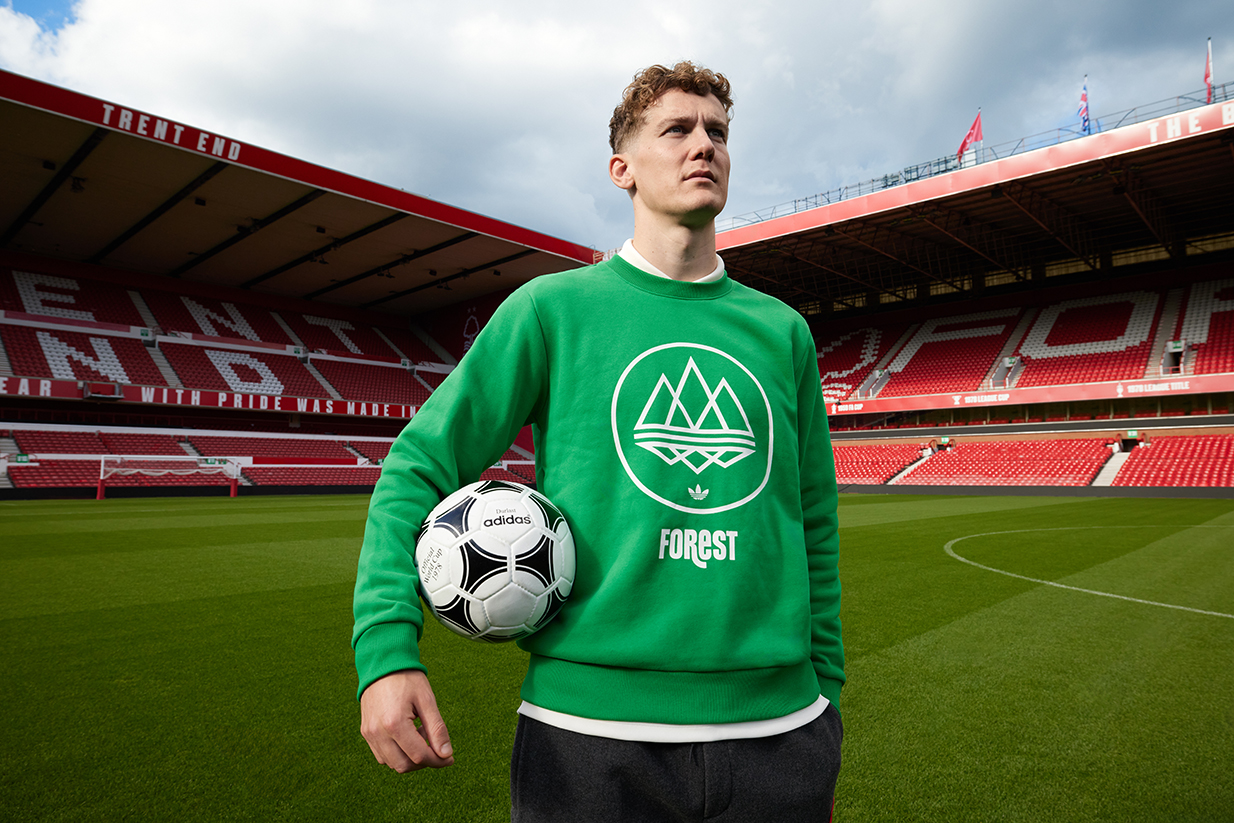 The club-specific capsules of footwear and apparel are realized by means of a considered campaign. Shot by renowned photographer Kevin Cummins alongside the team at &SON, the resulting visuals feature current players and club legends from Aberdeen (Leighton Clarkson & Neil Simpson) , Leeds United (Dan James & Eddie Gray) and Nottingham Forest (Ryan Yates & Viv Anderson) football clubs in their element, photographed at their respective home grounds.